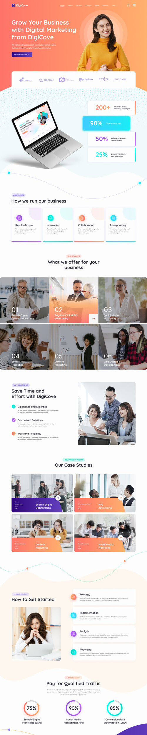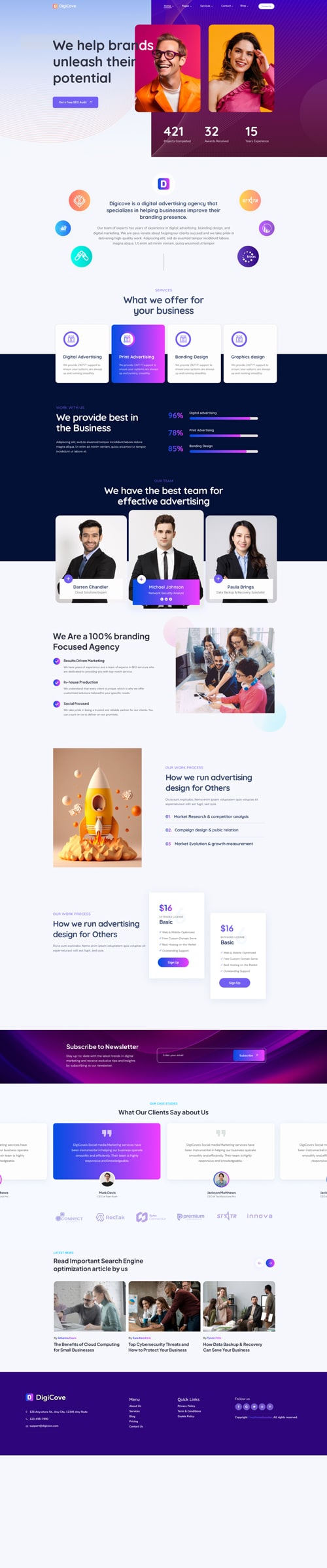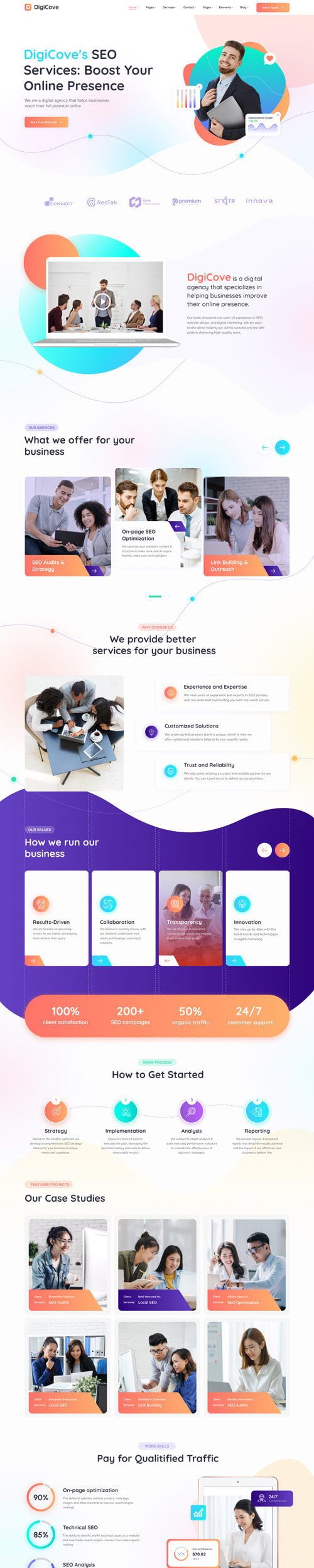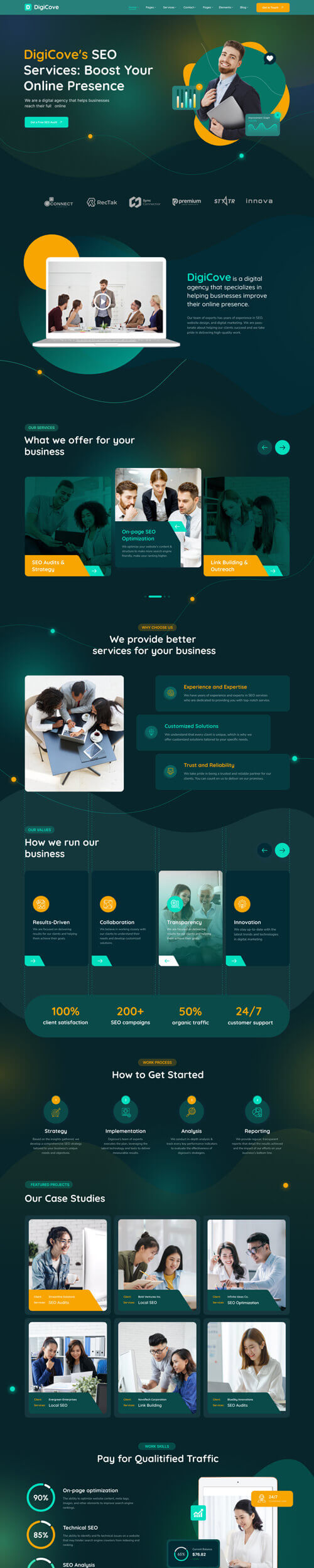 Our team of experts has years of experience in SEO, website design, and digital marketing. We are pass-ionate about helping our clients succeed and we take pride in delivering high-quality work.